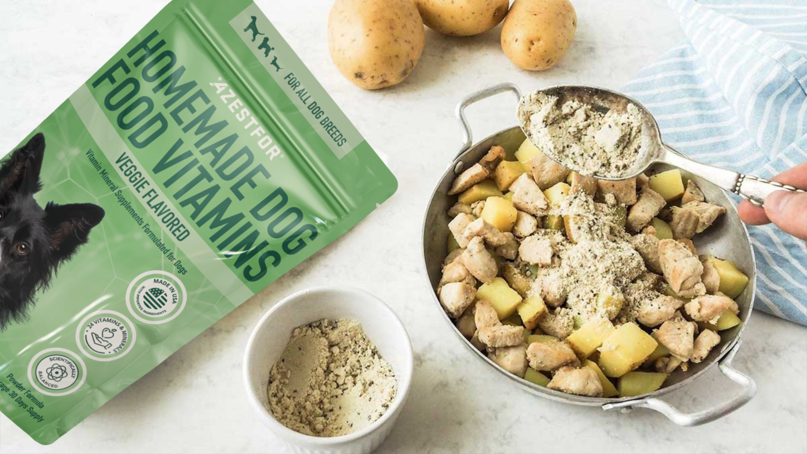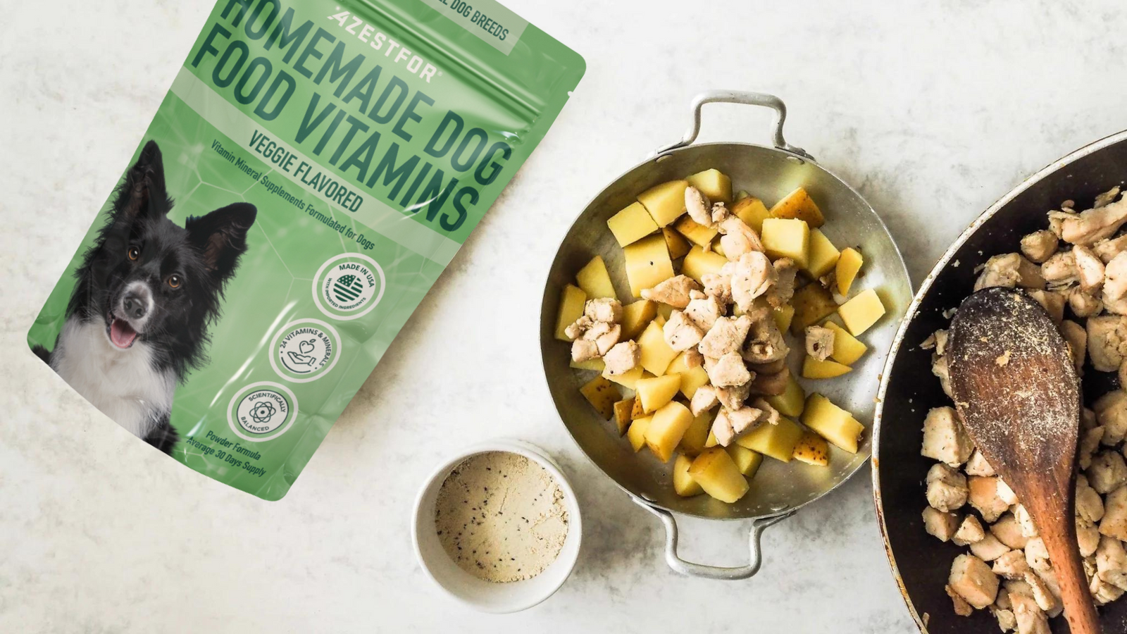 This Best Homemade Dog Food recipe is grain free, easy on digestion and designed for weight loss. This three ingredient recipe combines chicken, potatoes and Azestfor Homemade Dog Food Vitamins to create a meal that will help with weight reduction to manage obesity and is a great diet for large and giant breed dogs, as it helps to prevent rapid growth which can lead to orthopedic problems later in life.