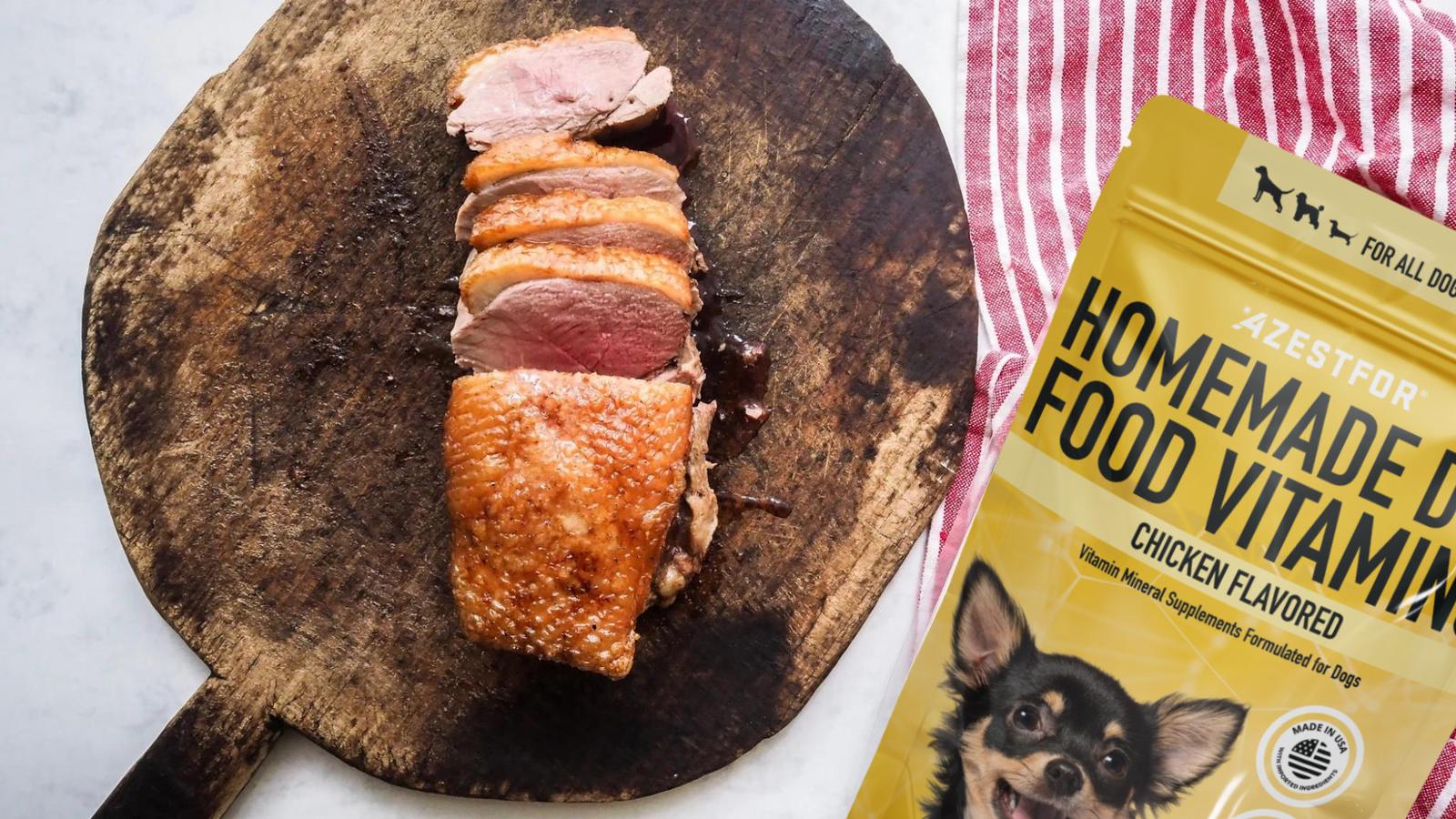 Yes Dogs can safely eat duck meat. Fully cook the duck with out seasoning. Remove the skin which is high in fat and all bones which are hazard to the dogs digestive system. The duck should be part of a balanced diet. For optimal nutrition follow an Azestfor homemade dog food recipes grain free - for a complete and balanced meal that meets AAFCO nutritional requirements.