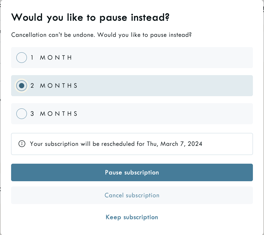 Also, you always have an option to swap the product, customize delivery frequency or pause subscription without cancellation.